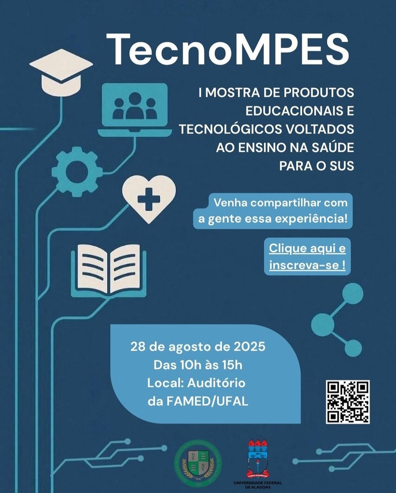 A I Mostra de Produtos Educacionais e Tecnológicos voltados ao ensino na saúde para o SUS (I Mostra Tecno MPES), é um evento promovido por discentes do Mestrado Profissional em Ensino na Saúde (MPES) da Faculdade de Medicina da Universidade Federal de Alagoas (FAMED/UFAL).