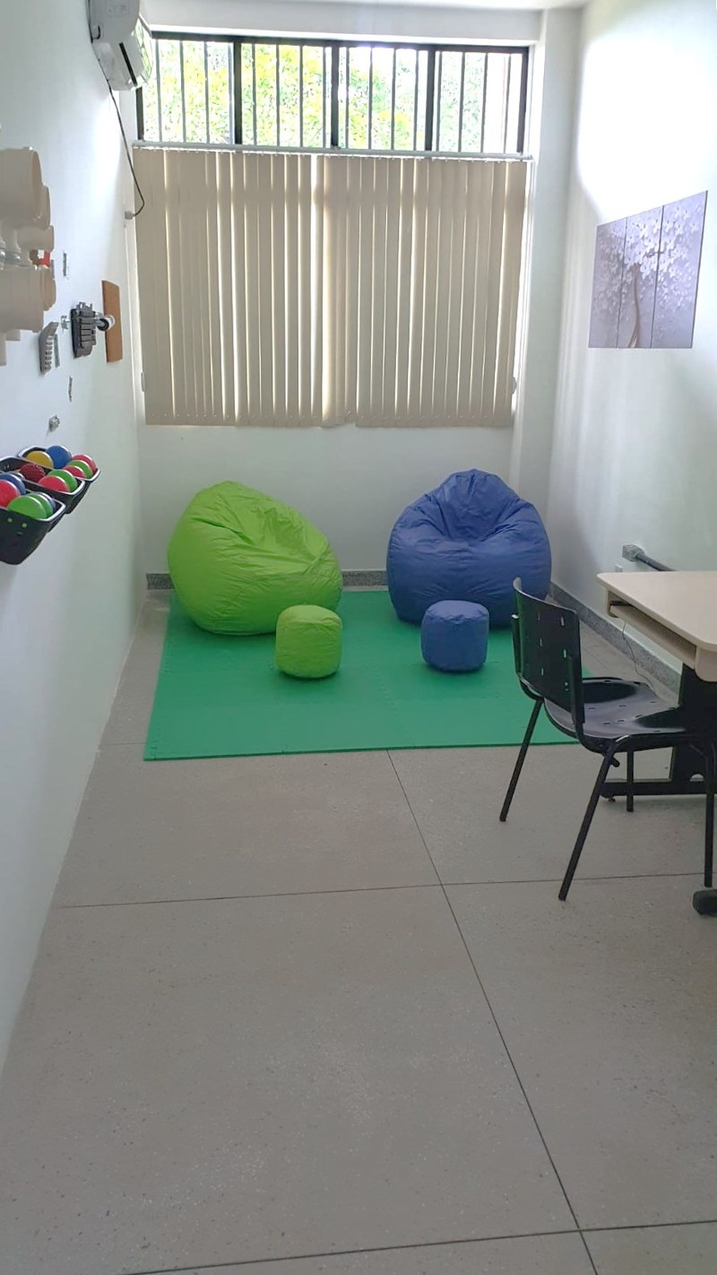 A sala fica localizada no prédio Prof. Abelardo Duarte (bloco C) e conta com climatização, iluminação artificial e natural, piso emborrachado, puffs, almofadas, decoração e objetos sensoriais.
